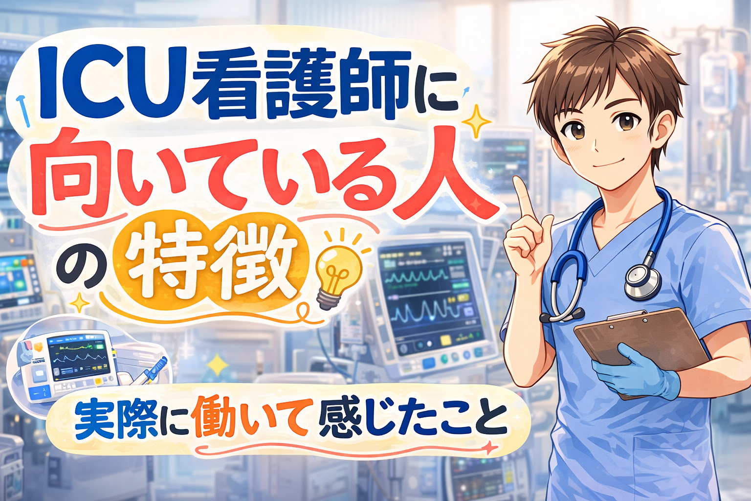 実際にICUで働いてみて感じた、「ICU看護師に向いている人の特徴」について書いてみたいと思う。